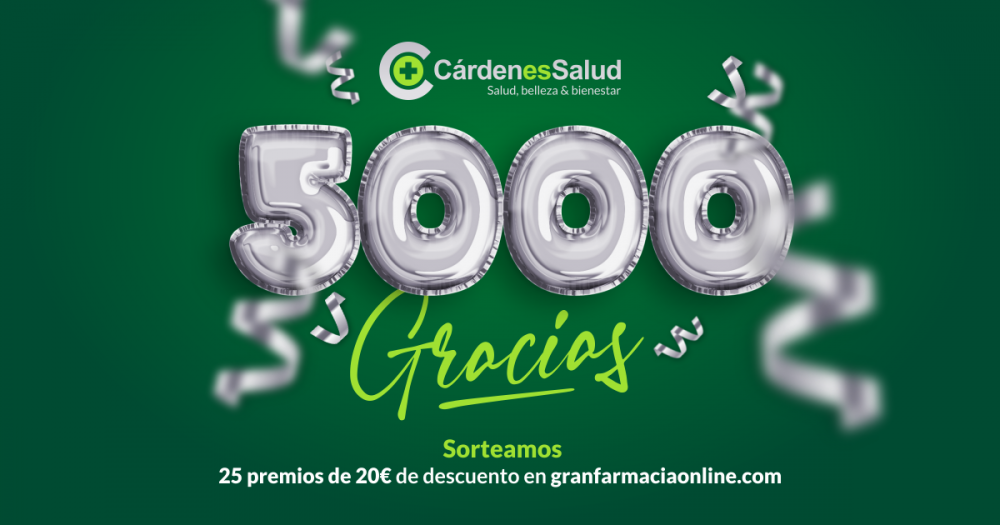 Es por ello, por lo que sorteamos 25 premios... ¡sí, 25 premios! de 20€ de descuento para canjear en nuestra tienda online granfarmaciaonline.com. Para optar a ello, deberás ser fan de Cárdenes Salud en Facebook y además, realizar una compra online superior a 30€ desde el 15 de junio al 15 de julio y automáticamente, entrarás en el sorteo.