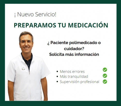 El farmacéutico prepara su tratamiento crónico completo acorde a lo que su médico le ha prescrito.Nos encargaremos de revisar las pautas prescritas y detectar cualquier tipo de error e interacción. Analizaremossi su medicación es apta para añadirla en las bolsitas y de esta forma, cada dos semanas se le hará entrega de un blíster enrollado donde se incluirá toda la medicación necesariaclasificada por días y tomas, ¡Es tan sencillo como abrir la bolsita y tomar! Olvídate de cajas aparatosas y de cambios de formatos.