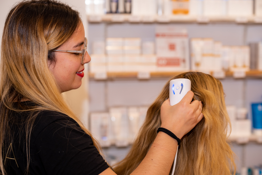 En la peluqueria TECUIDA llevamos a cabo un análisis capilar para poder cuantificar si el crecimiento y la caída del cabello es o no el adecuado, para lo que tendremos en cuenta el grosor del nuevo cabello, porque es el que va a marcar la necesidad o no de someterse a un tratamiento de fortalecimiento del mismo.