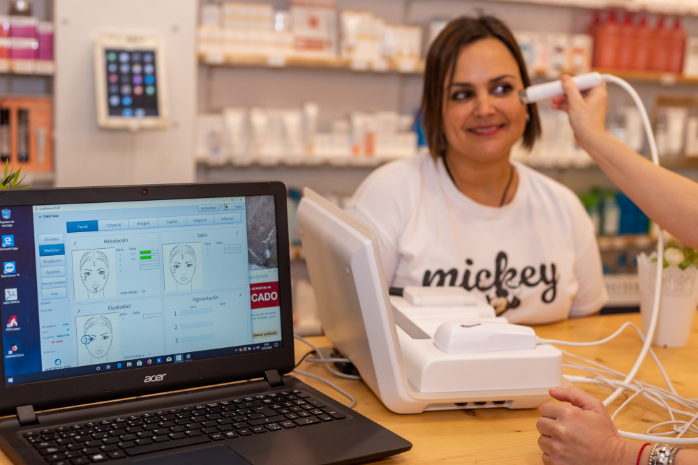 En nuestra zona especial dedicada a la dermocosmética y el cuidado de la piel contamos con un dermoanalizador de última generación que nos permite conocer el estado de la piel de cada consumidor con el fin de poder realizar una recomendación de producto mucho más exacta y segura, consiguiendo así una mayor satisfacción de las necesidades particulares de cada piel. Asimismo, nos permite hacer un seguimiento pormenorizado de la efectividad de los tratamientos recomendados, teniendo en cuenta que nuestra piel pasa, a lo largo del año, por diversos estados debido fundamentalmente al clima y humedad que nos rodea y a otros factores como el estrés, la toma de medicamentos, etc.